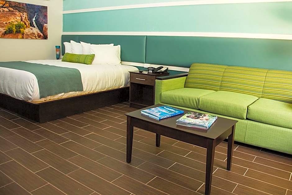 This room features a microwave, small refrigerator, and 42-inch flat-screen cable television. A sofa bed and work desk are also included.